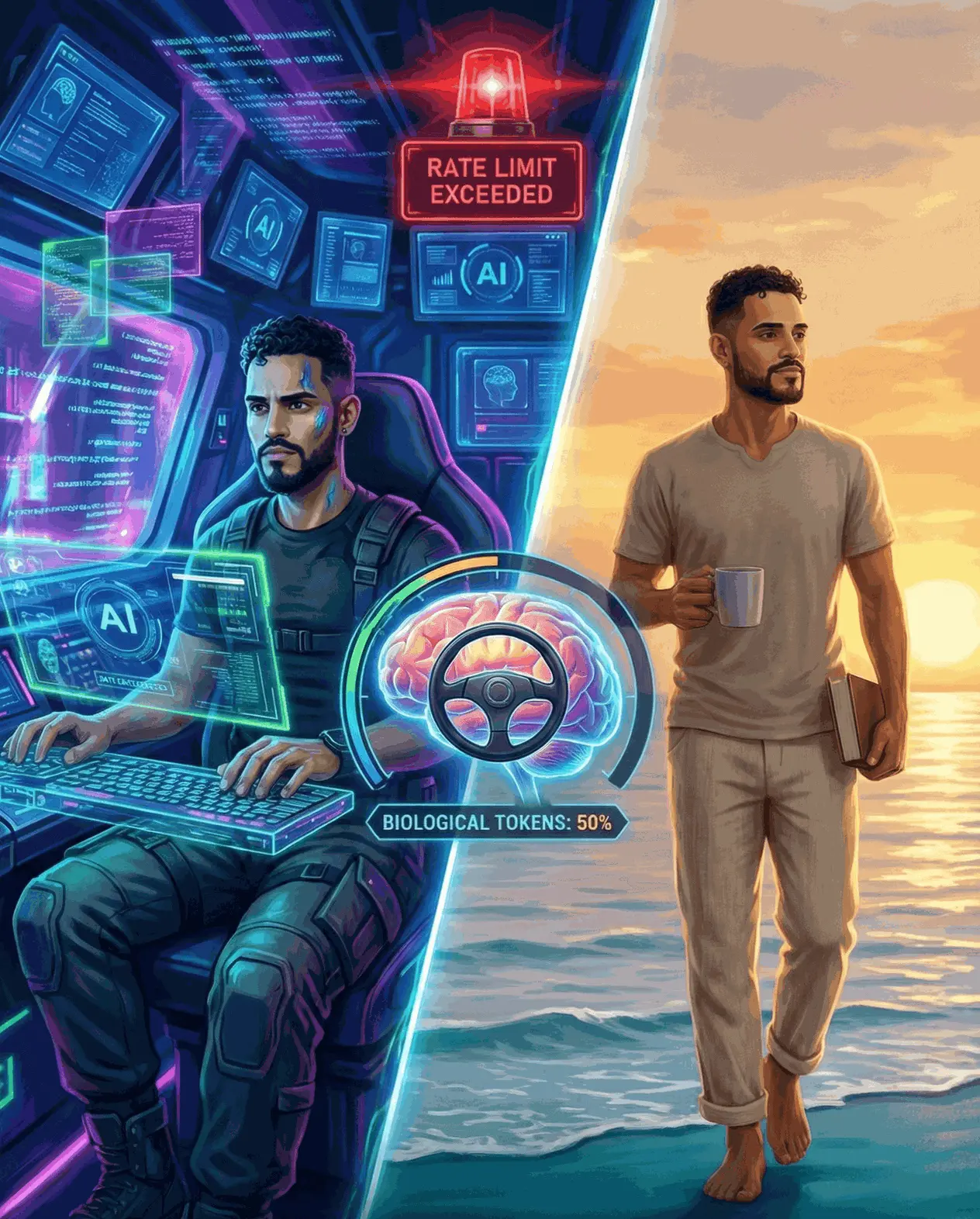 My brain feels like a web browser with 500 tabs open, and the fan is spinning so fast the laptop is about to lift off the desk. I realized I hadn't truly "adapted." I had just traded anxiety for adrenaline. I was trying to out-compute a computer using biological hardware that needs sleep, food, and time to decompress.